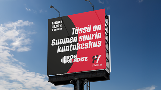 The FitVantaa and it’s sub-brand Iron Paradise -project was a complete rebranding of an existing gym complex. The new dynamic, strong and energetic look has been created to support and portray the gym’s position as Finland’s foremost fitness centre.